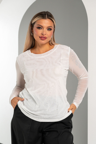 Ткань: сетка . Лонгслив полуприлегающего покроя, с небольшим вырезом. Перед лонгслива двойной.Рукав длинный. Длина ок.64см.